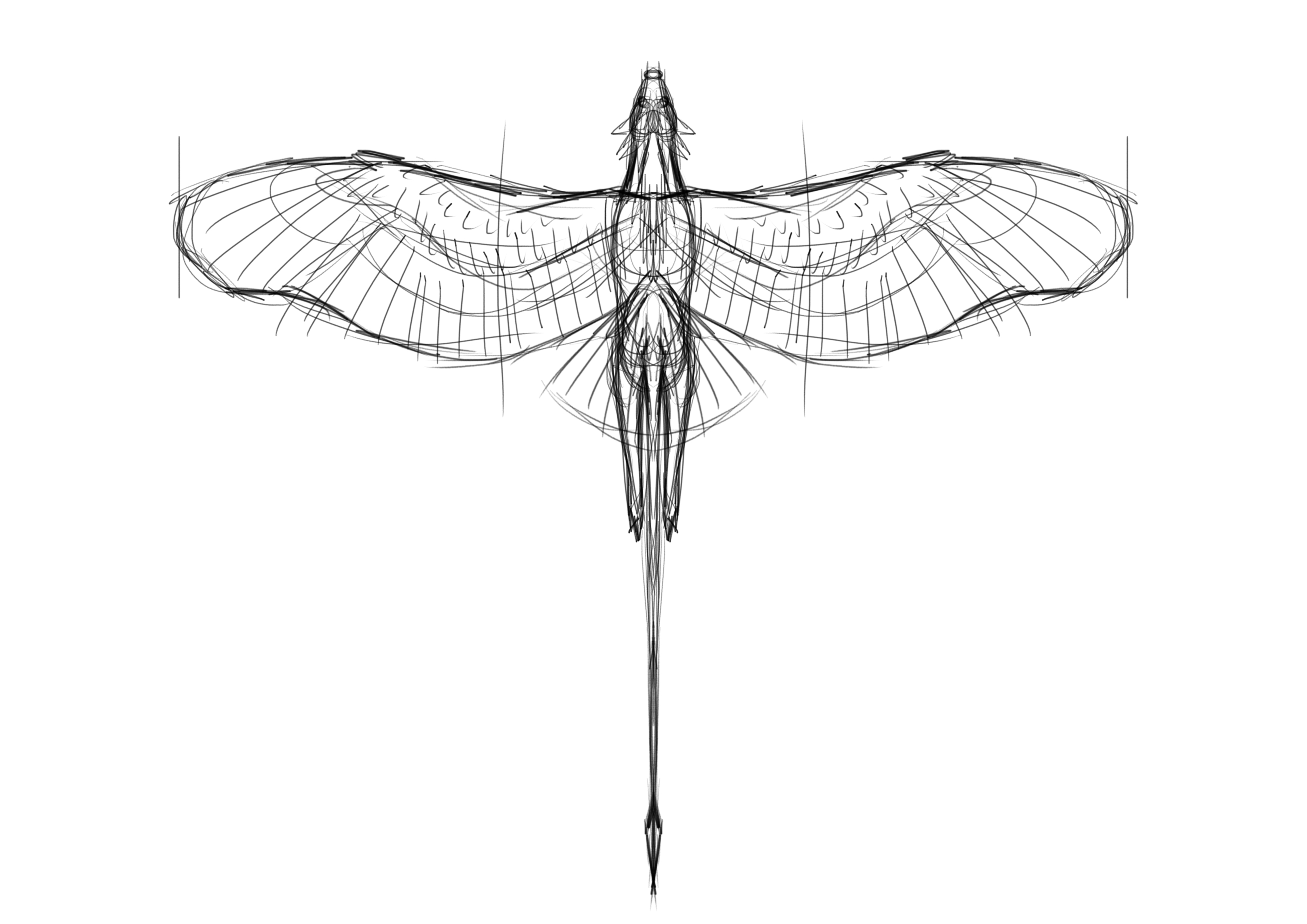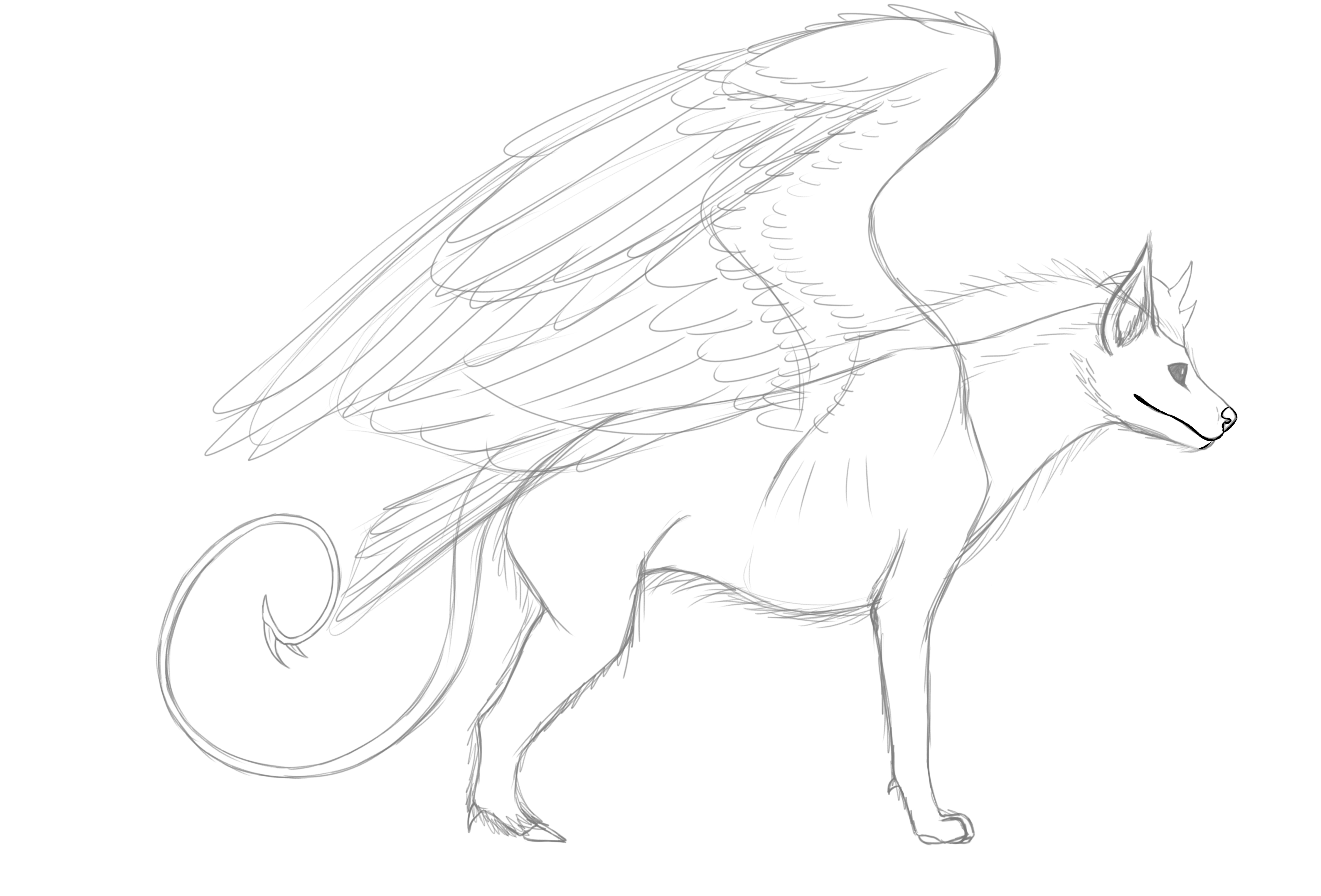Deinokolyana have a hyena-like, usually dark-coloured body with varying spotted or striped patterns and a thin furless tail with at least one bony spike at the end. They have feline front legs, ungulate hind legs with sharp dew claws, and large avian wings and tail feathers at the base of their tail.